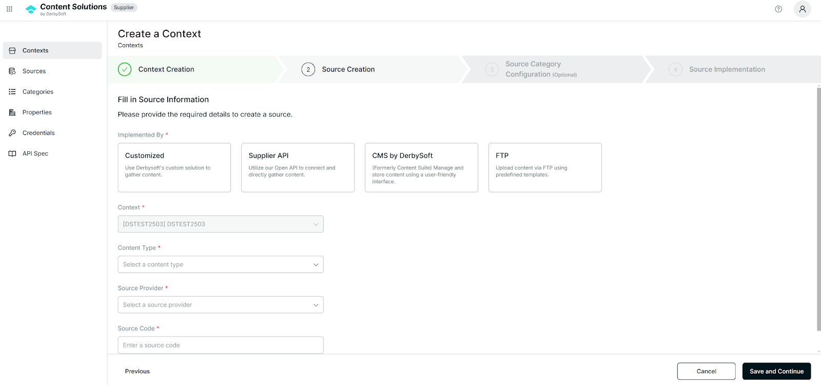 - The system generates this code automatically based on the implementation type but allows manual updates. (System Code rule is “ContextCode_ContentType_SourceProvider_ImplementBy_01”, end with two random number)