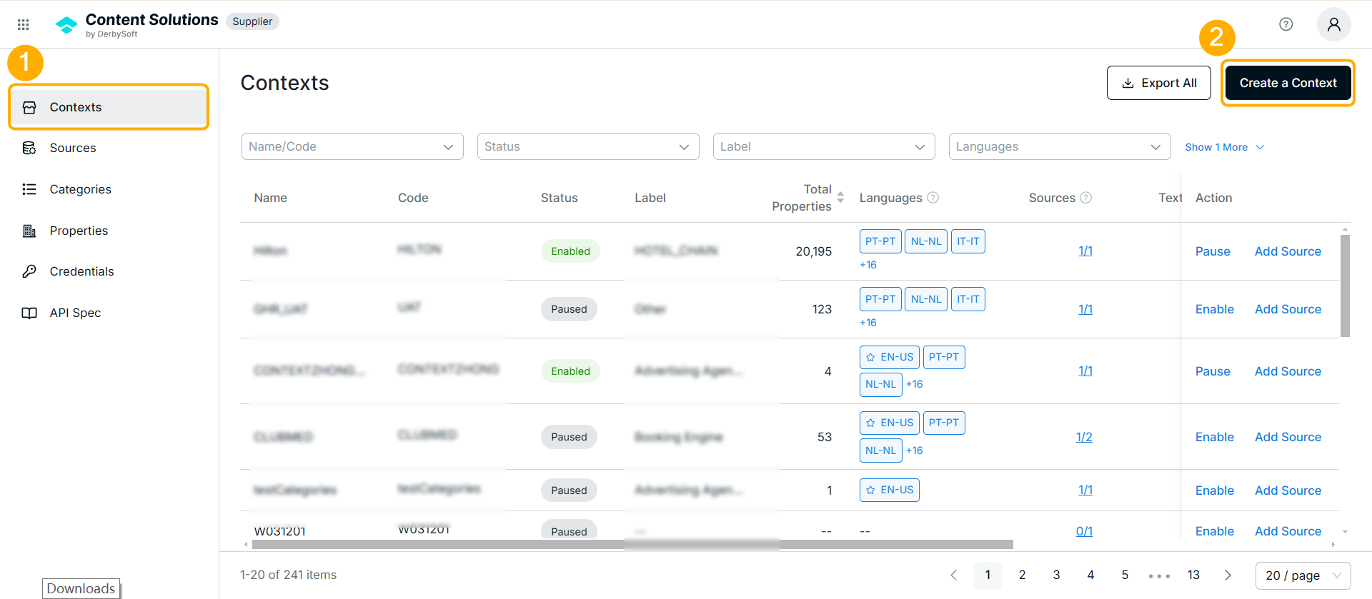 - Context Name: Provide a descriptive name for the context (e.g., "Hilton" or "IHG").