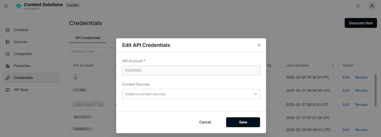 Edit and Manage API Credentials