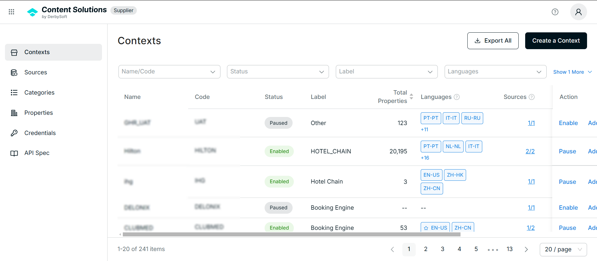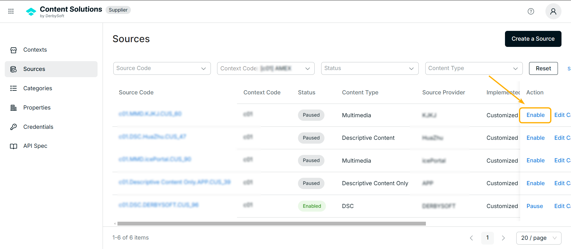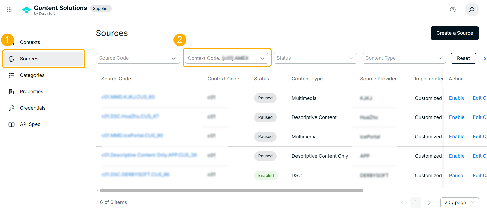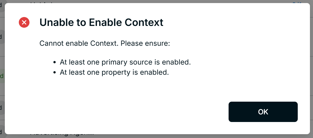 | Sources | The number of enabled sources out of the total sources in this context. Hover to see the list of enabled sources used in this context. |