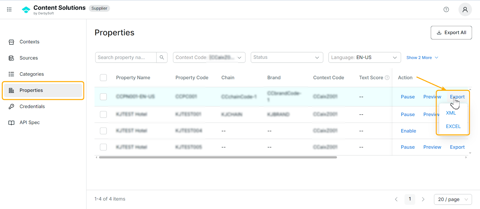 [2025 April Release] You can export a single property's content in XML & Excel format
