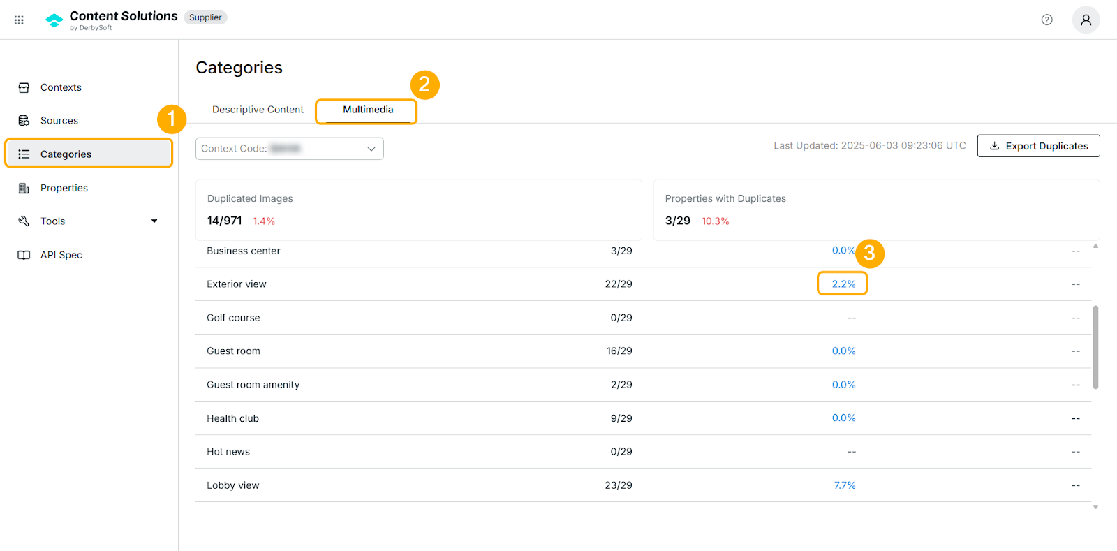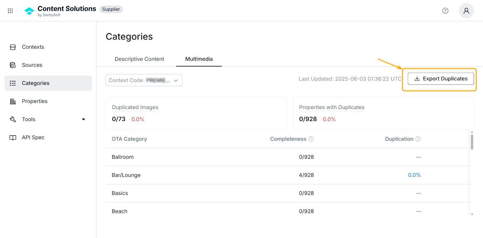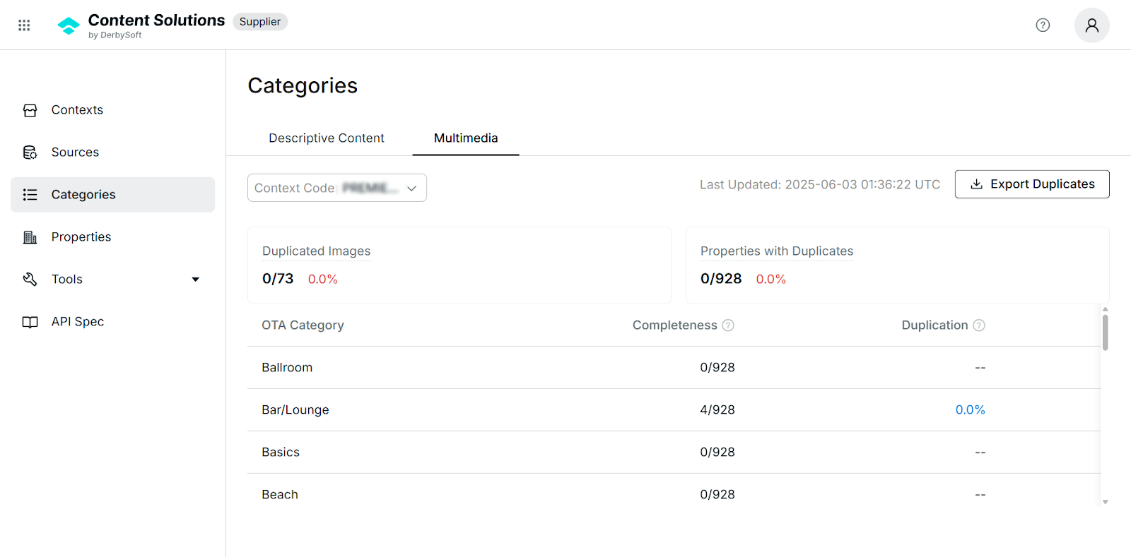 Users are able to check Completeness and Duplication scores for each category.- Completeness: A score that measures how complete the OTA category is in regards to images.