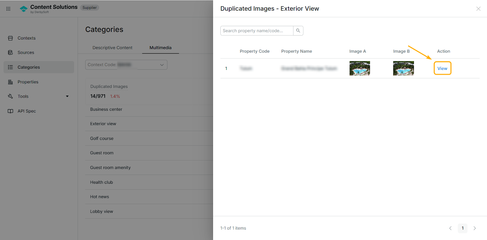On Categories > Multimedia page, users can find the duplication rate and clicking one rate will show the list of duplicated images. Select View in the Action column to access details.