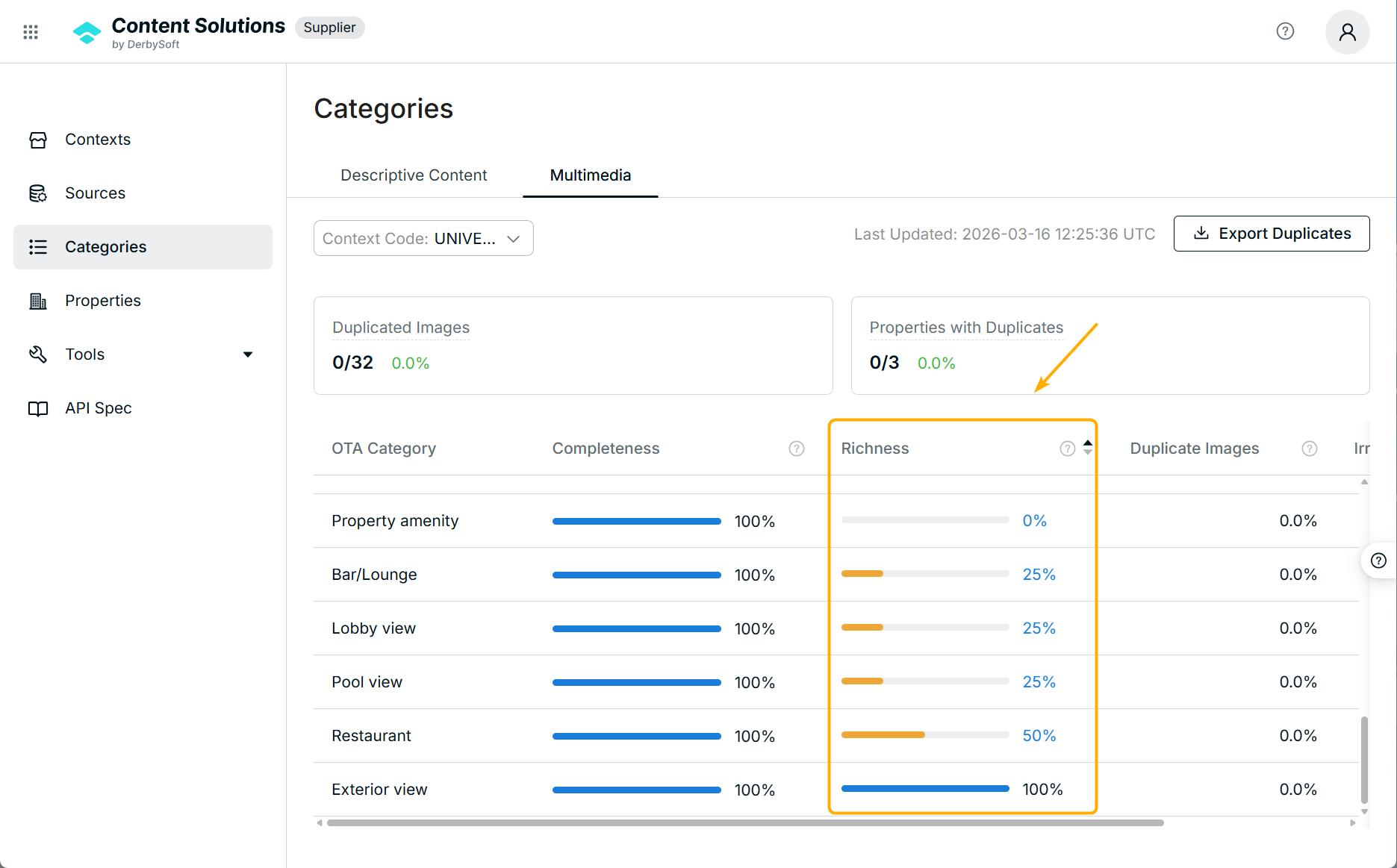 This feature designed to help suppliers evaluate and improve the visual quality of properties.- This score is calculated at the hotel-category level and reflects both the diversity and quality of images.